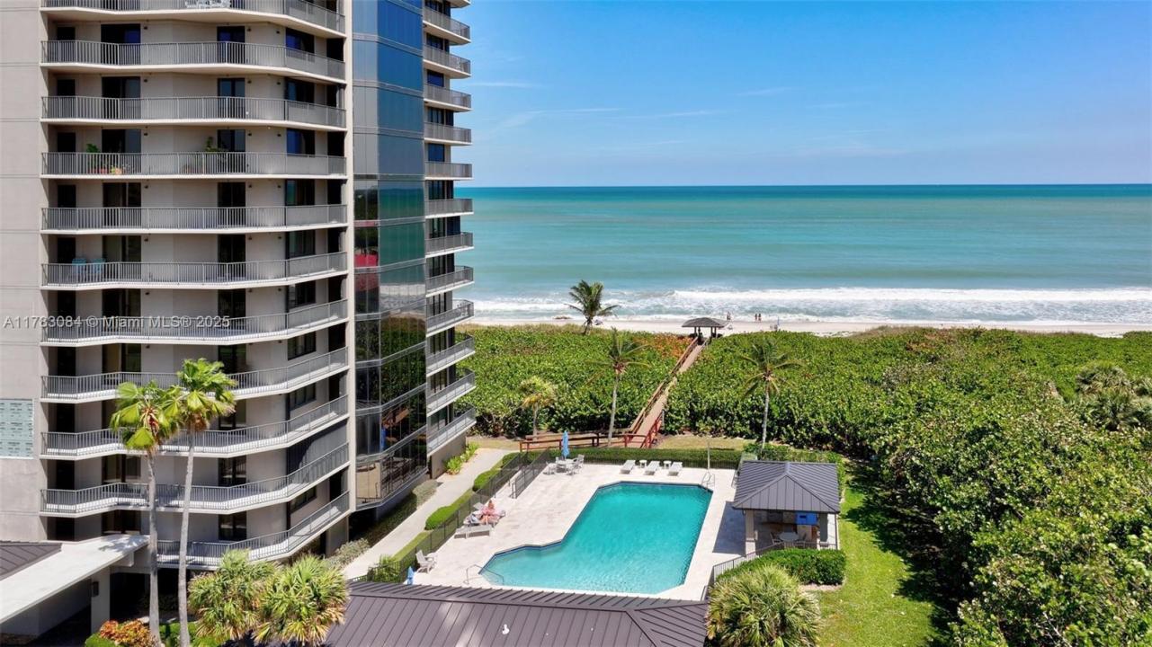 Experience coastal living at its finest in this rarely available 3-bedroom, 2.5-bath corner residence located east of A1A in the highly desirable Visions community. This spacious oceanfront condo offers awe-inspiring, panoramic views of the Atlantic from a wraparound balcony—perfect for enjoying sunrises and sea breezes. Inside, the light-filled layout features generous living and dining areas, a well-appointed kitchen, and a primary suite with direct ocean views. A private 2-car garage offers convenience and security, while additional storage ensures everything has its place. Residents enjoy access to resort-style amenities, including a deeded private beach, a heated pool with grilling area, tennis courts, a fitness center, and more. With views that stretch for miles,